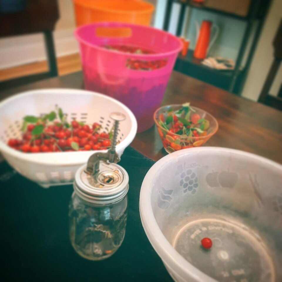If you are getting free backyard cherries, you are probably also getting organic cherries. This is amazing and means they would cost approximately ONE BILLION DOLLARS if you were to purchase them at an orchard. But it also means there will be worms and you will have to check each cherry for little wriggling white larvae and their attendant trails of poo.